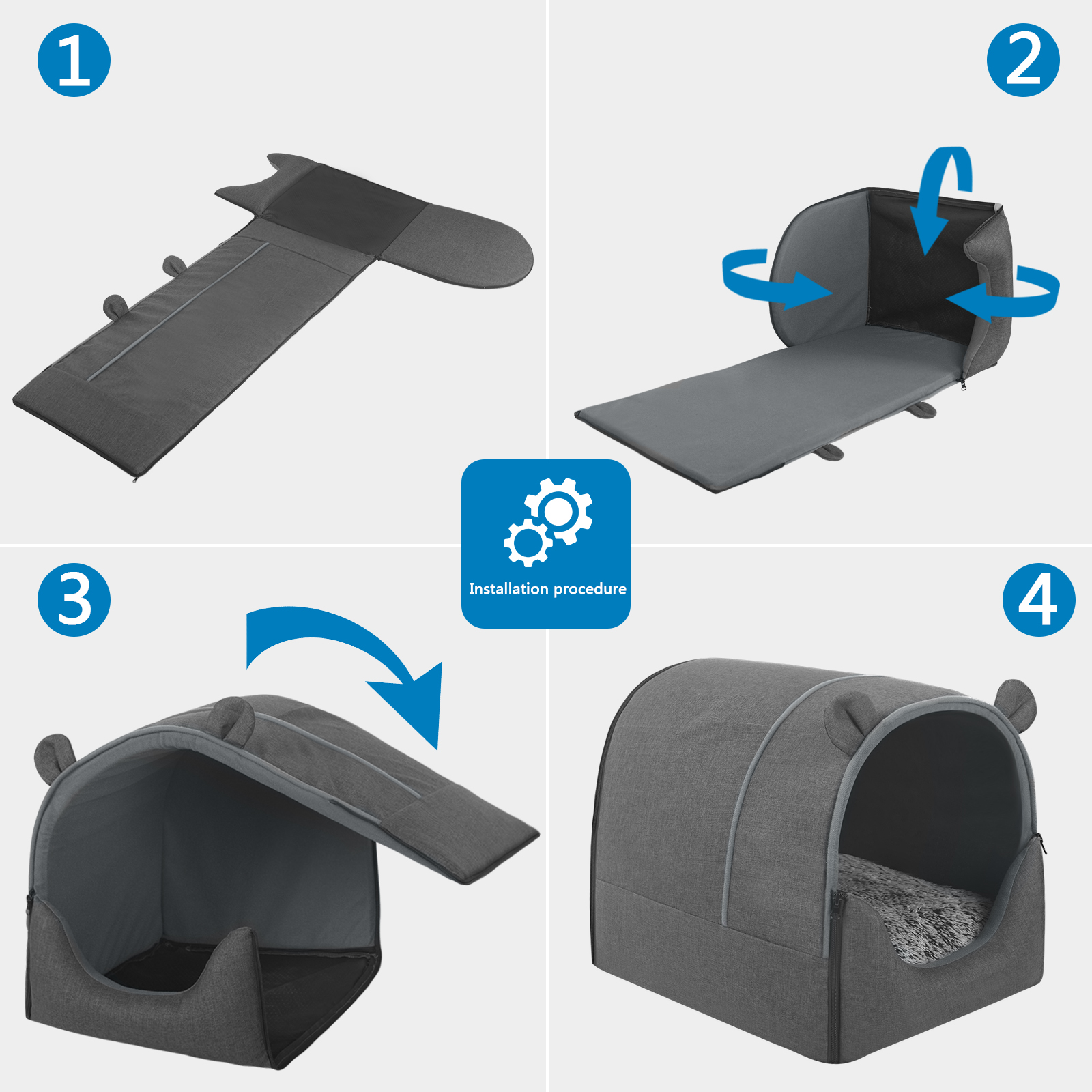 Katzenhaus Hundehöhle Katzenhöhle Kuschelhöhle Kleintierhaus Grau 107dgr